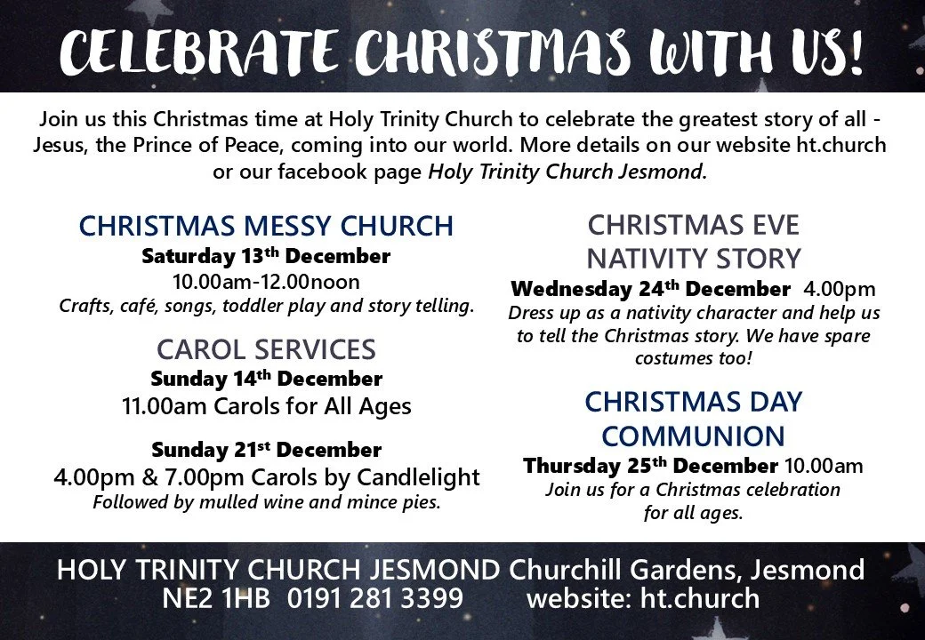 Come join us over the Christmas season. There’s a whole range of services and events to enjoy. More details below and on our events page.